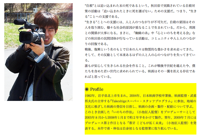 製作にあたって 企画・製作・撮影/都鳥拓也