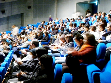 北上市文化交流センター・さくらホールの中ホールで開催された『1000年の山古志』上映会。東北地方では初上映となるこの日、昼の部と夜の部を合わせて400名を越える来場となりました。