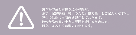- 企業・団体:一口 10,000円~(50,000円以上の企業・団体は映画冒頭に社名を掲載いたします)